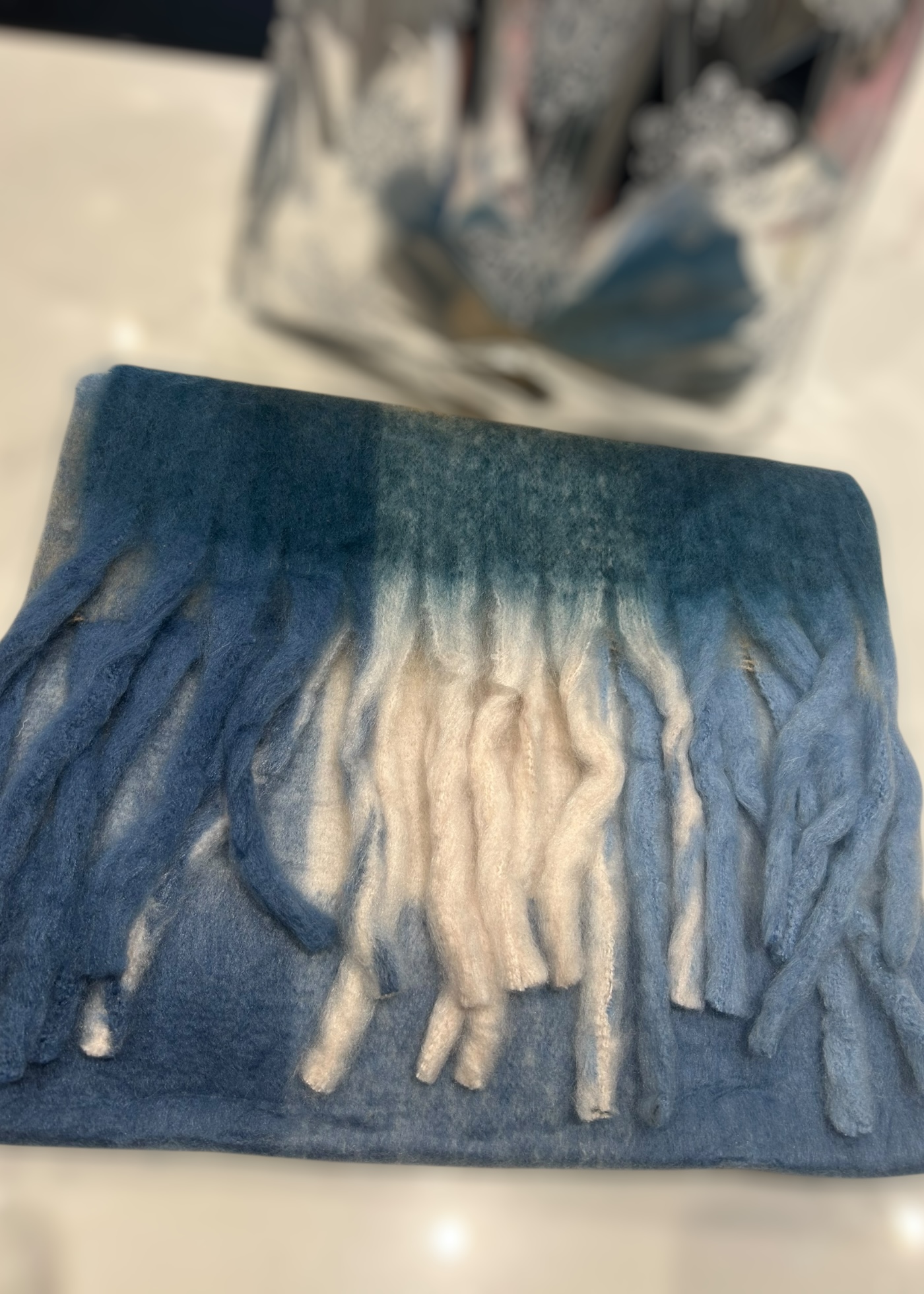 Beautiful gift set with blue check chunky scarf , wool blend star cosy socks and fresh linen lily flame brand candle