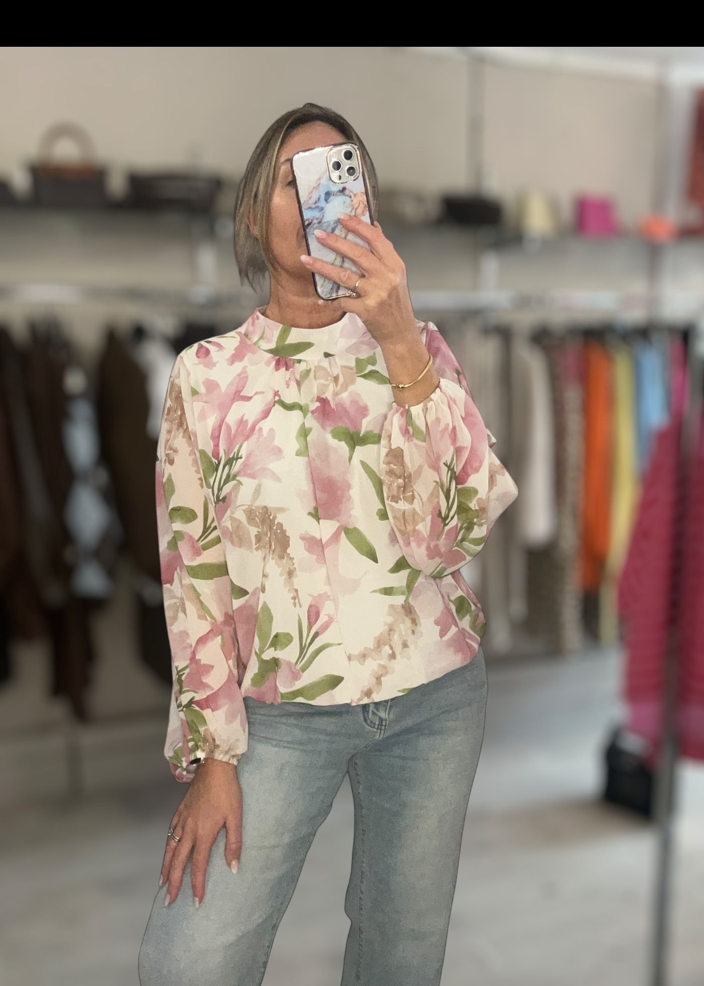 Beautiful floral pink top with long sleeve