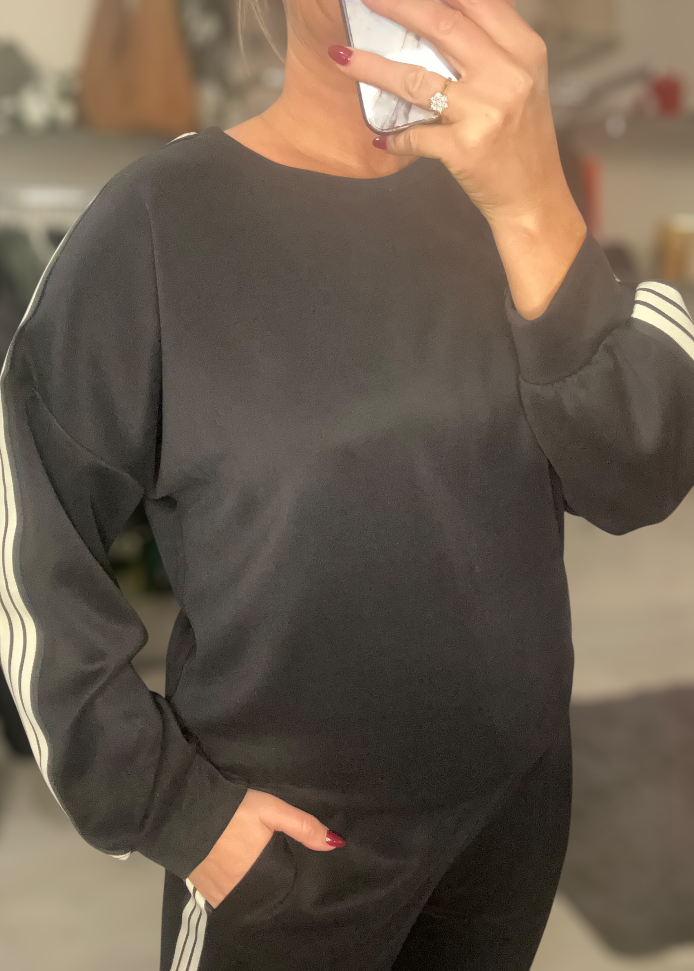 Sweatshirt style top with stripe to arm