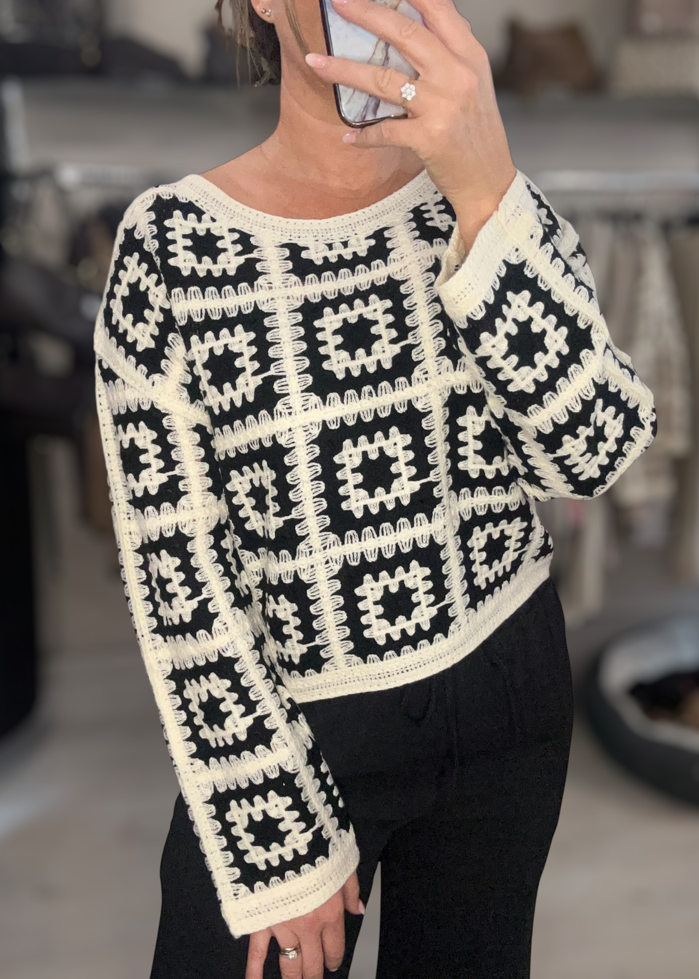 Gorgeous black and cream crochet style top