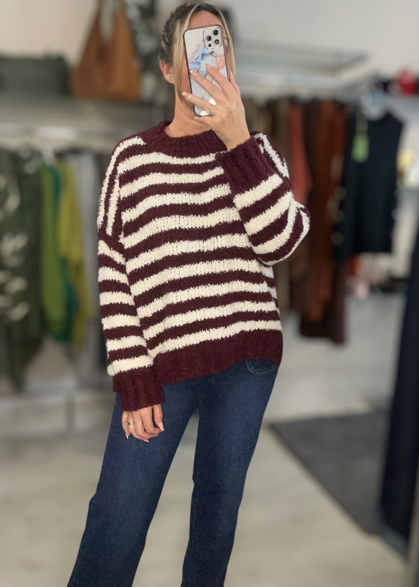 Super soft and cosy stripe knit with round neck and long sleeves