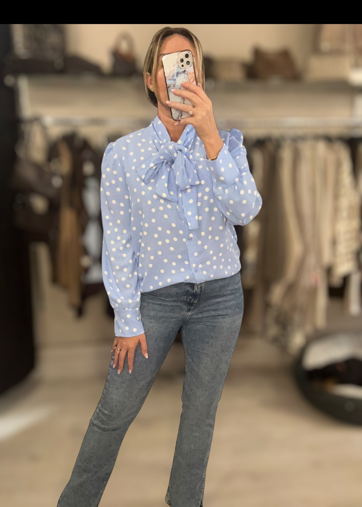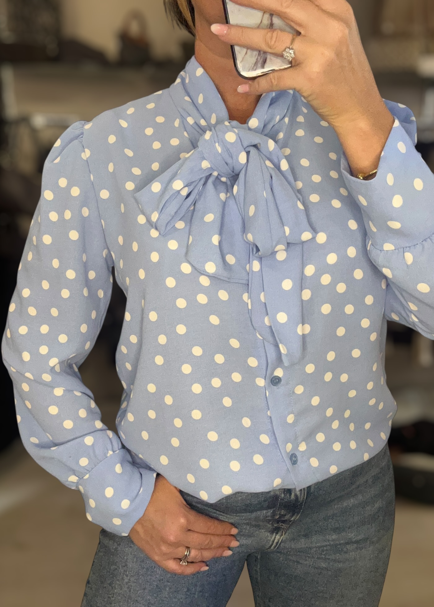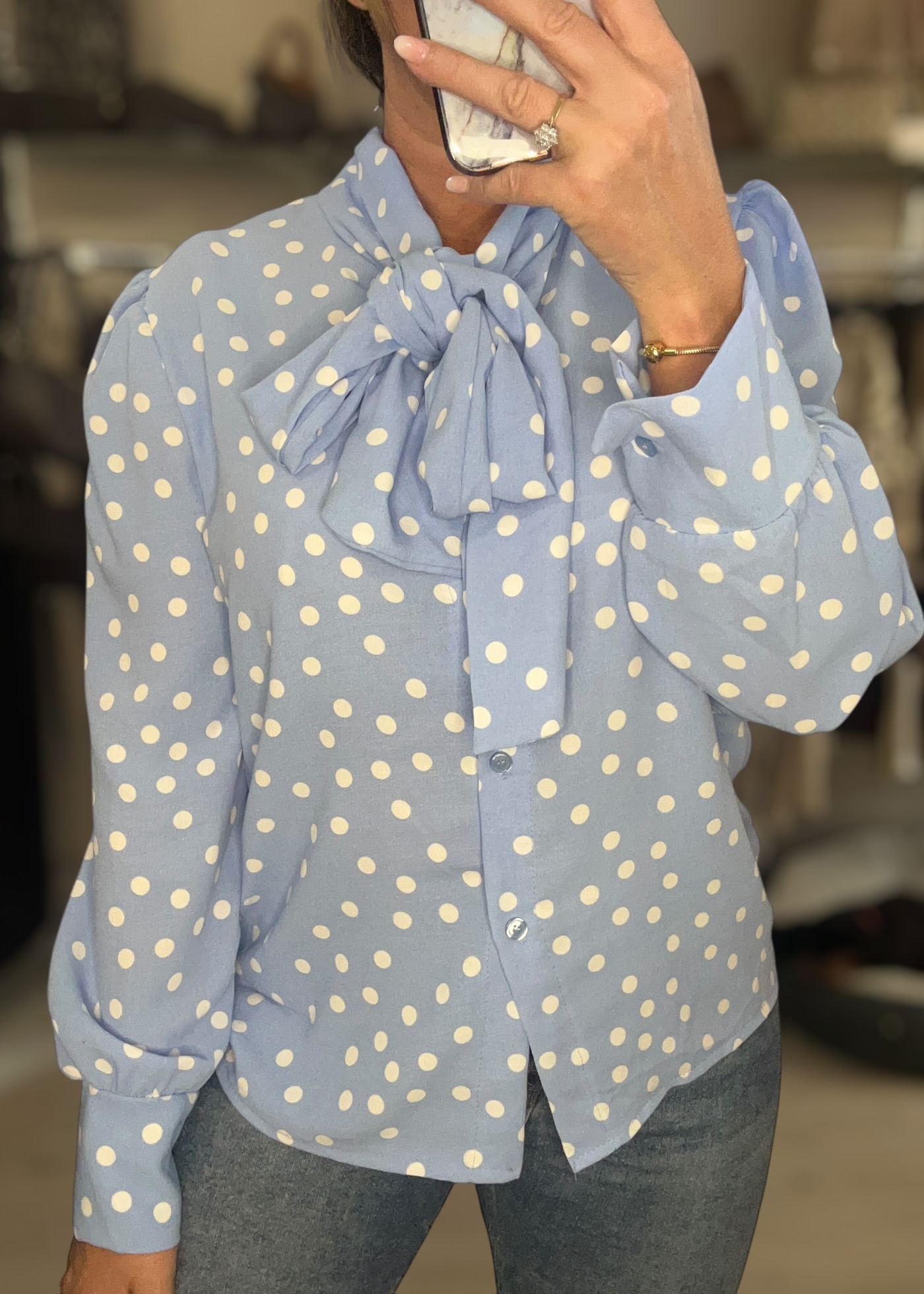 Polka dot blouse blue
