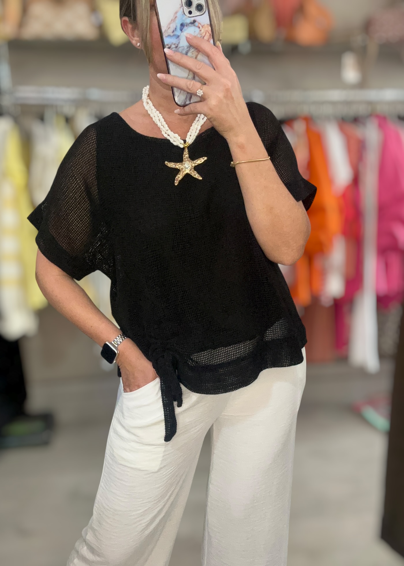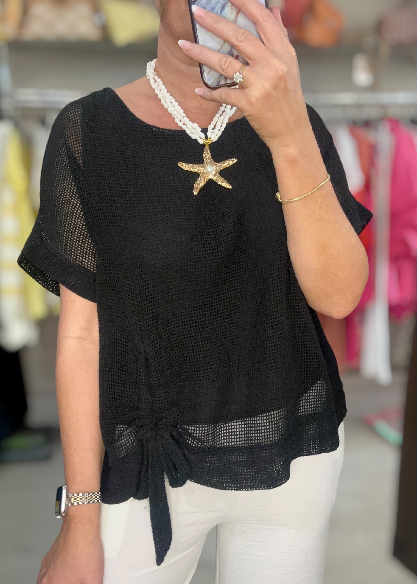 Beautiful short sleeve top with tie runched detail to front which can be adjusted to suit you