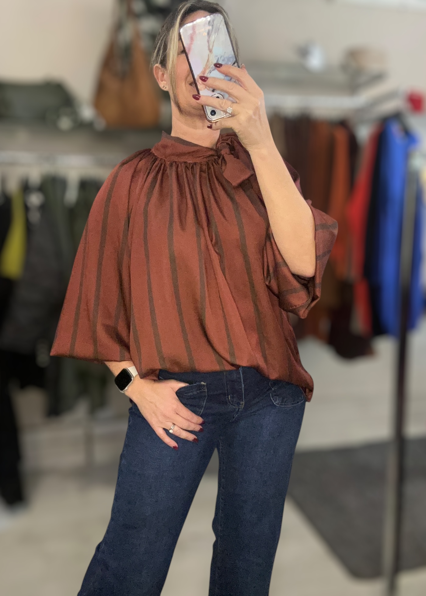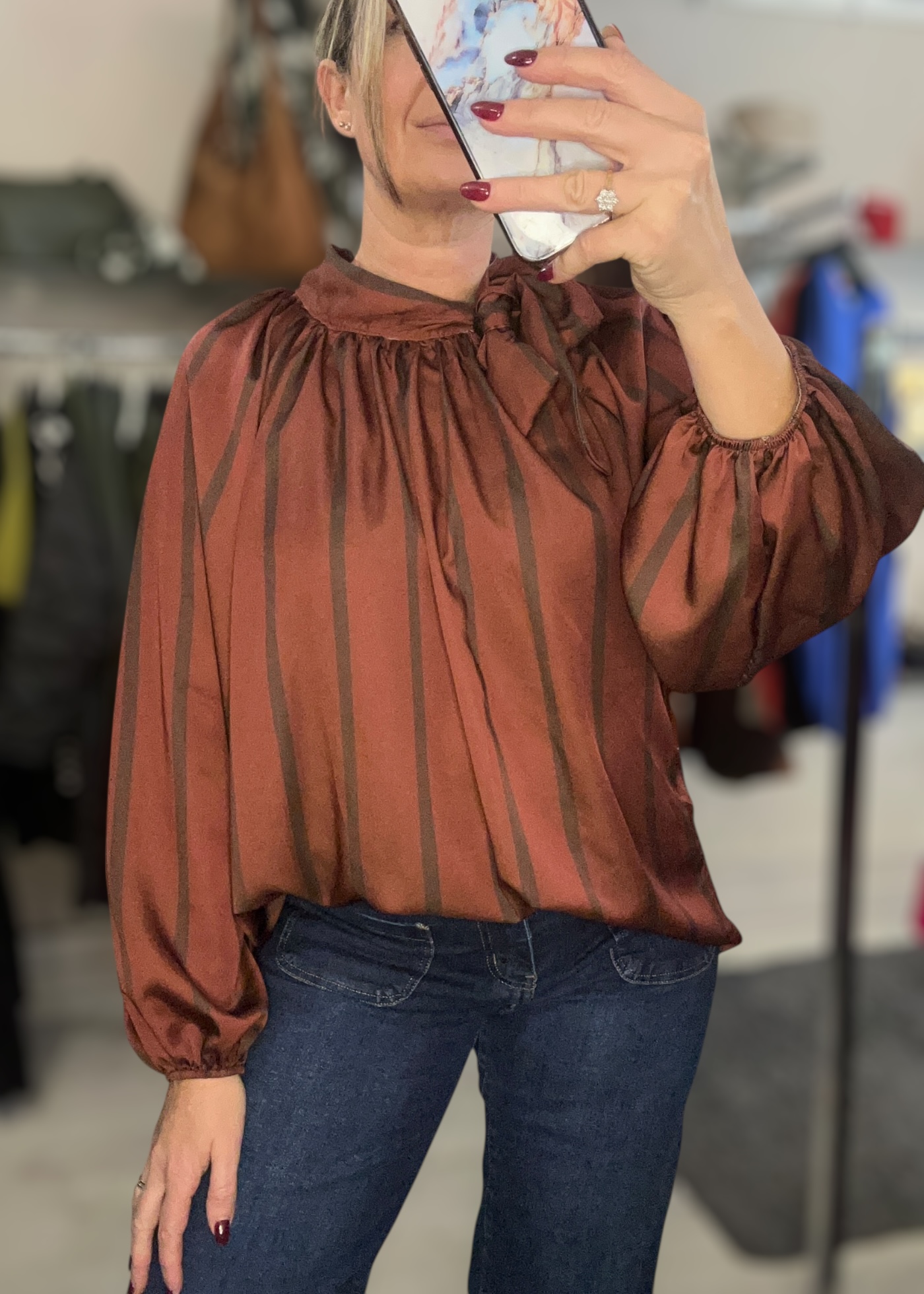 Gorgeous silky feel pussy bow stripe blouse