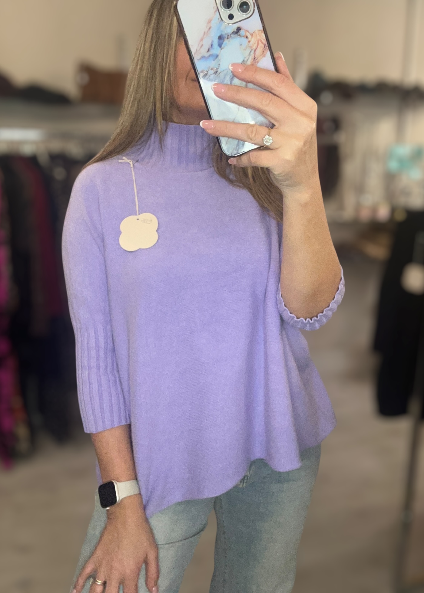 Soft fine knit with ribbed 3/4 sleeve and neck