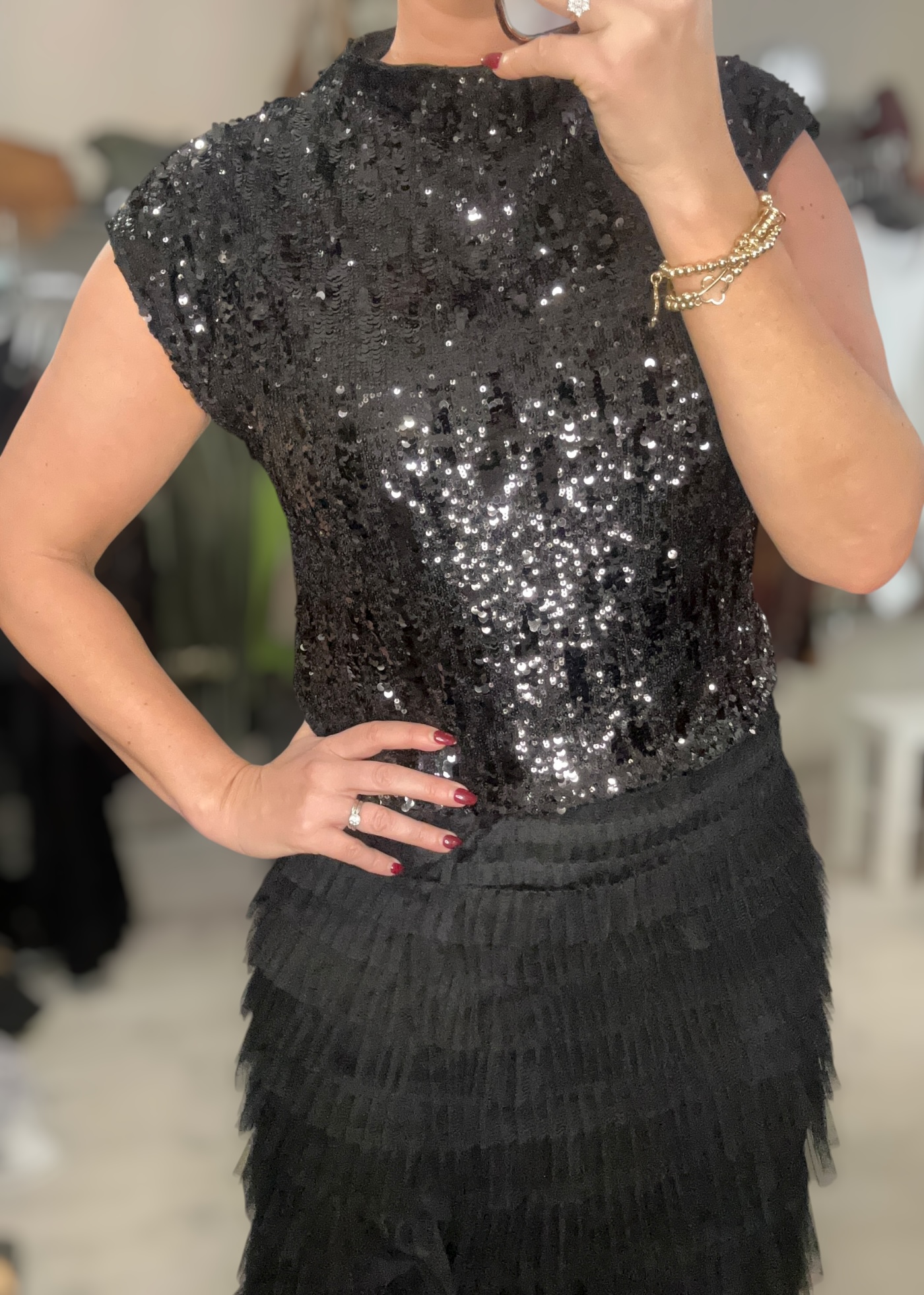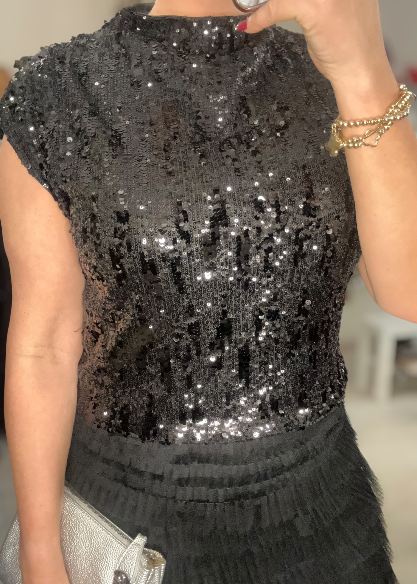 Sequin covered top with short sleeves