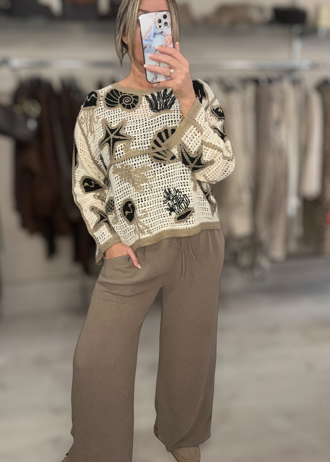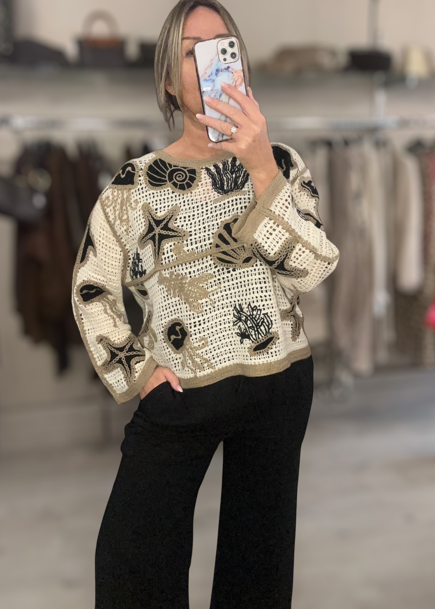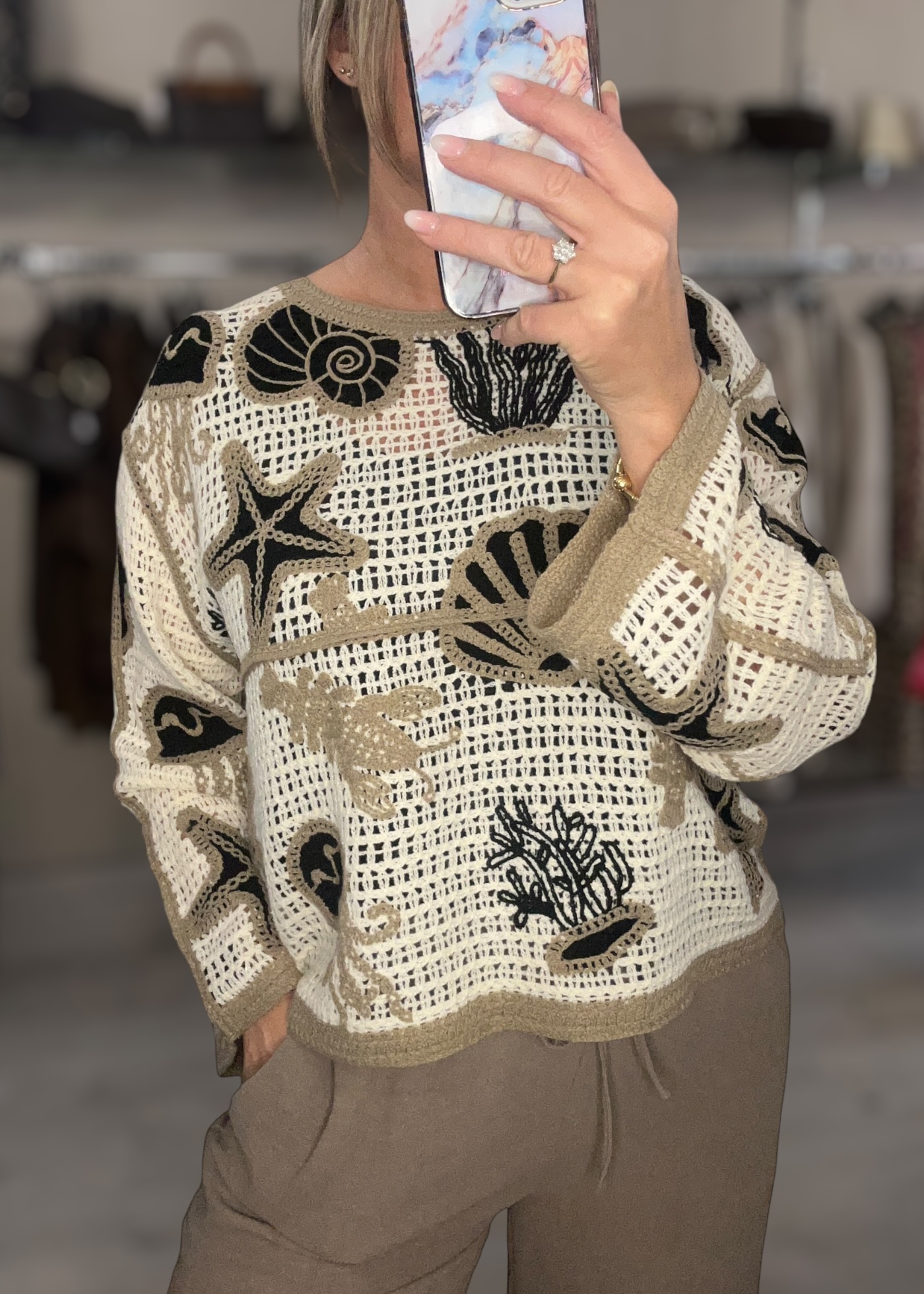 Beautiful crochet style top with long sleeve