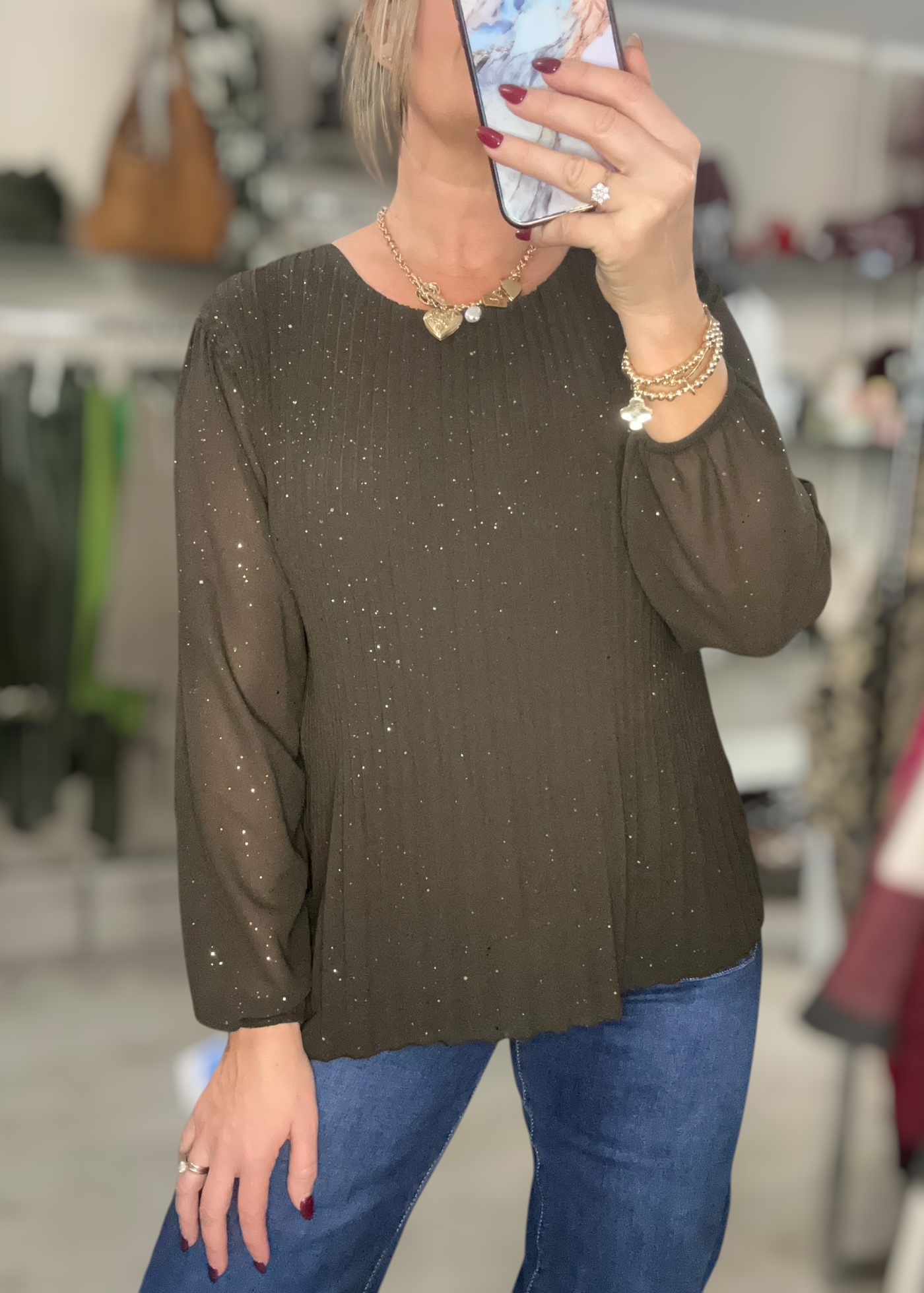 elastic cuff to the sleeve so can be worn pushed up to the elbow