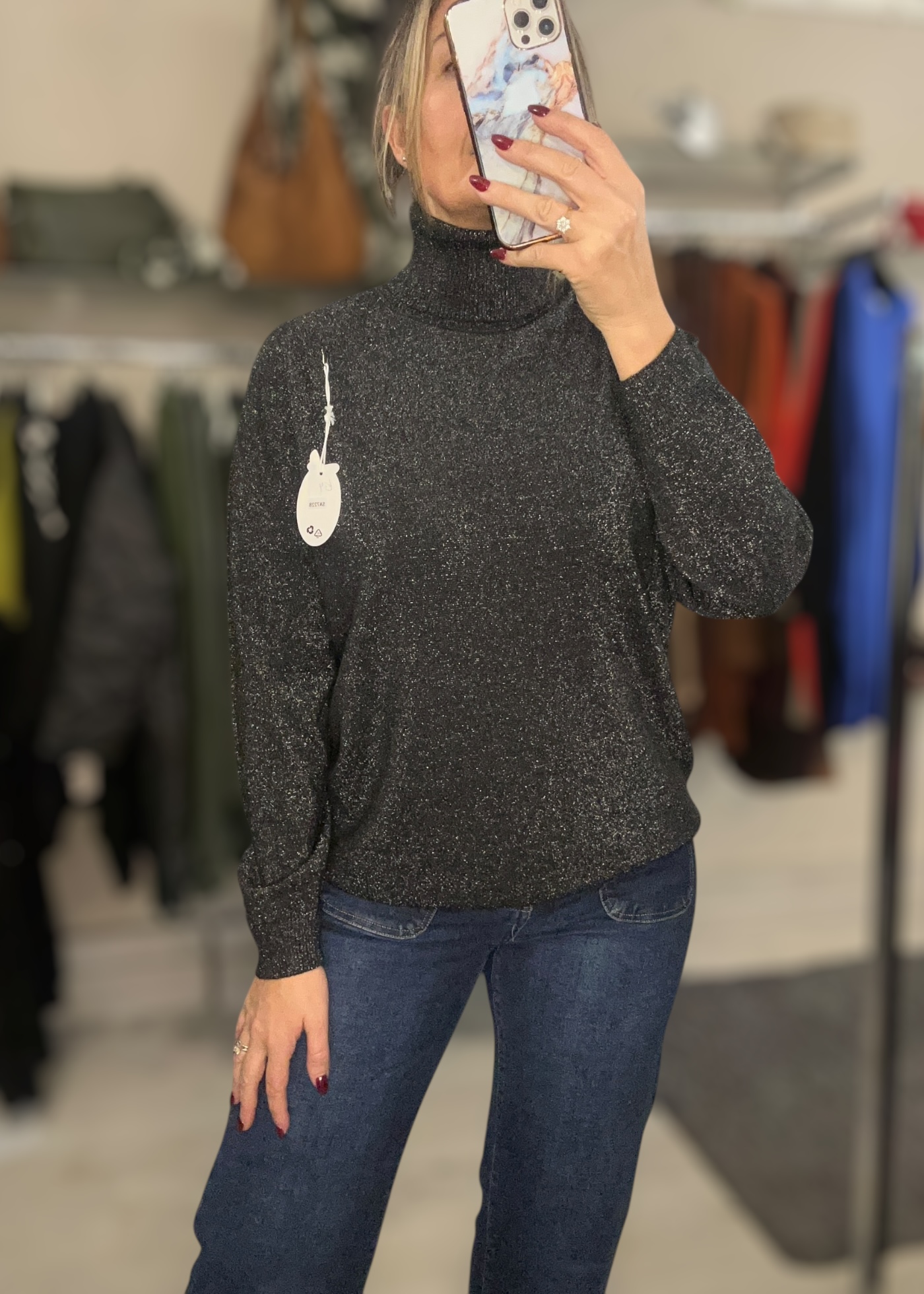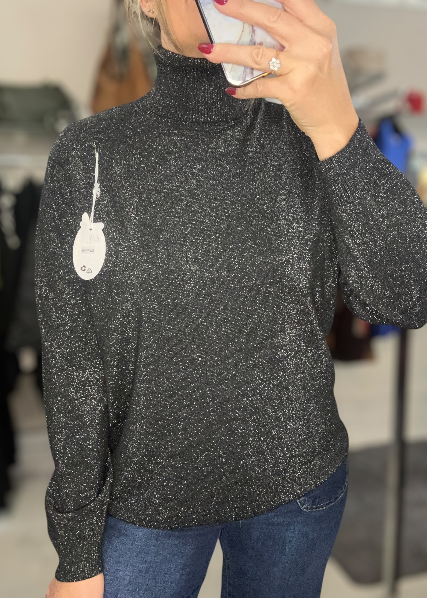 Lurex sparkle roll neck top with long sleeves