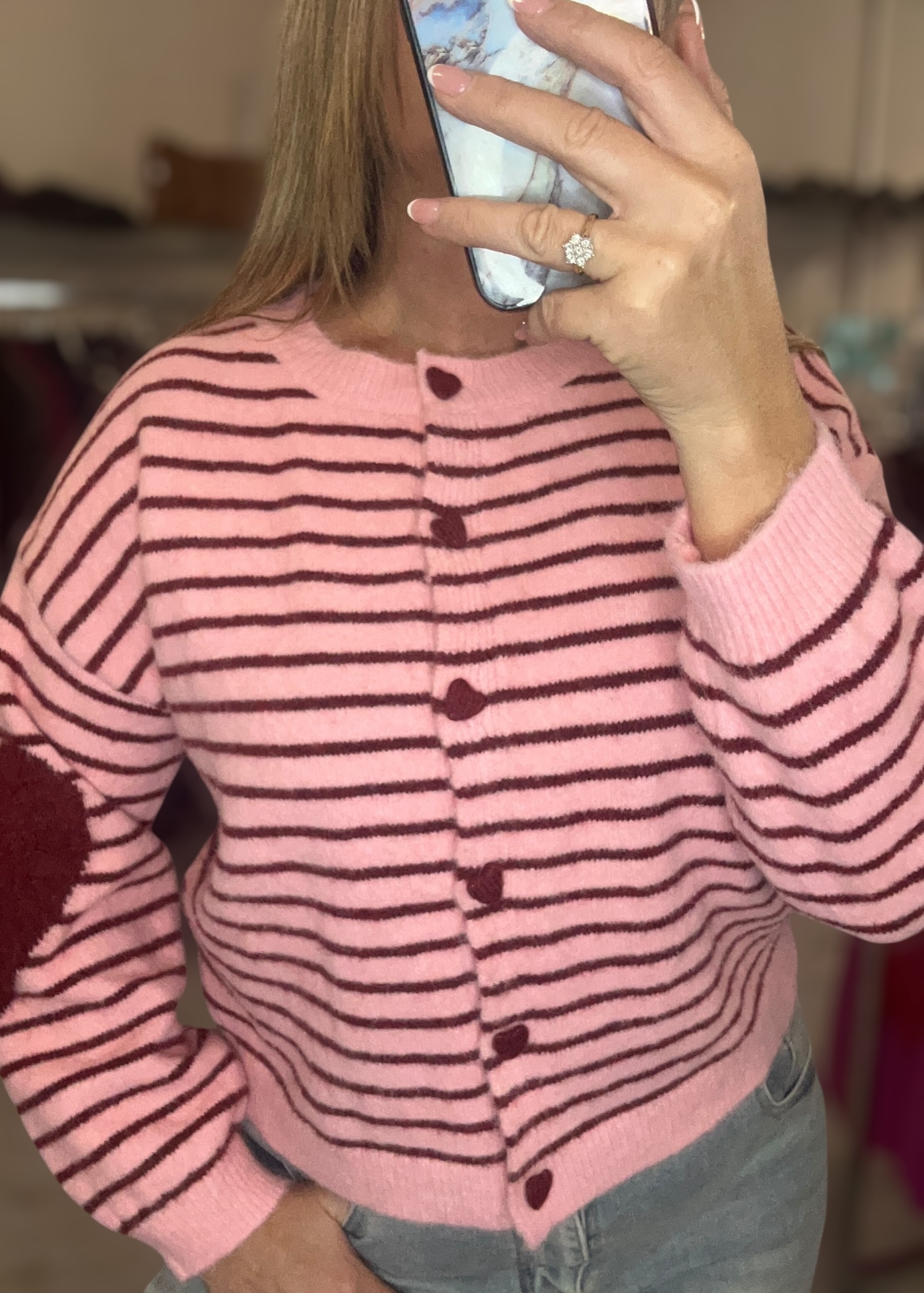 Soft touch stripe cardi with cute heart buttons and heart detail to elbows